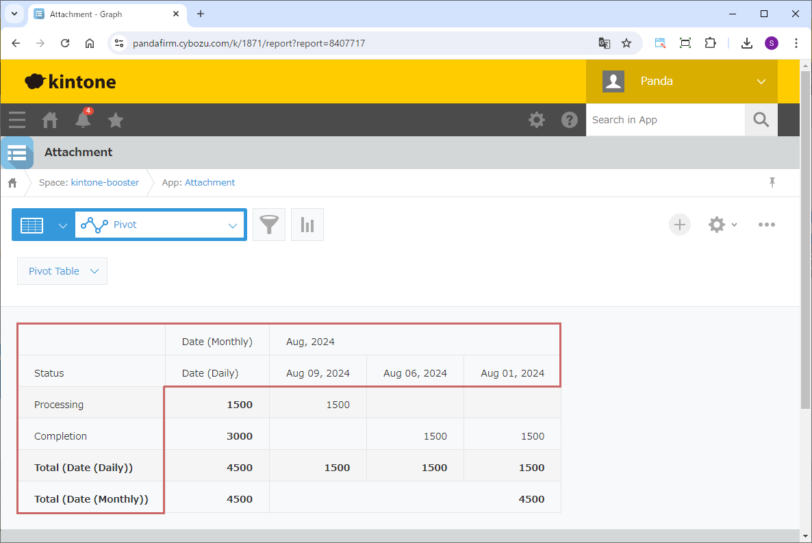 When you set the pivot table to swap rows and columns, the entire table is transposed.