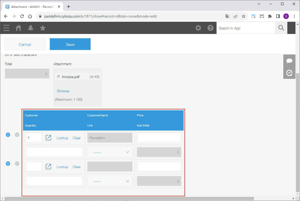 If Table Sorting is used and the table contains attachments, the record will be updated again after saving to correct the position of the attachments.