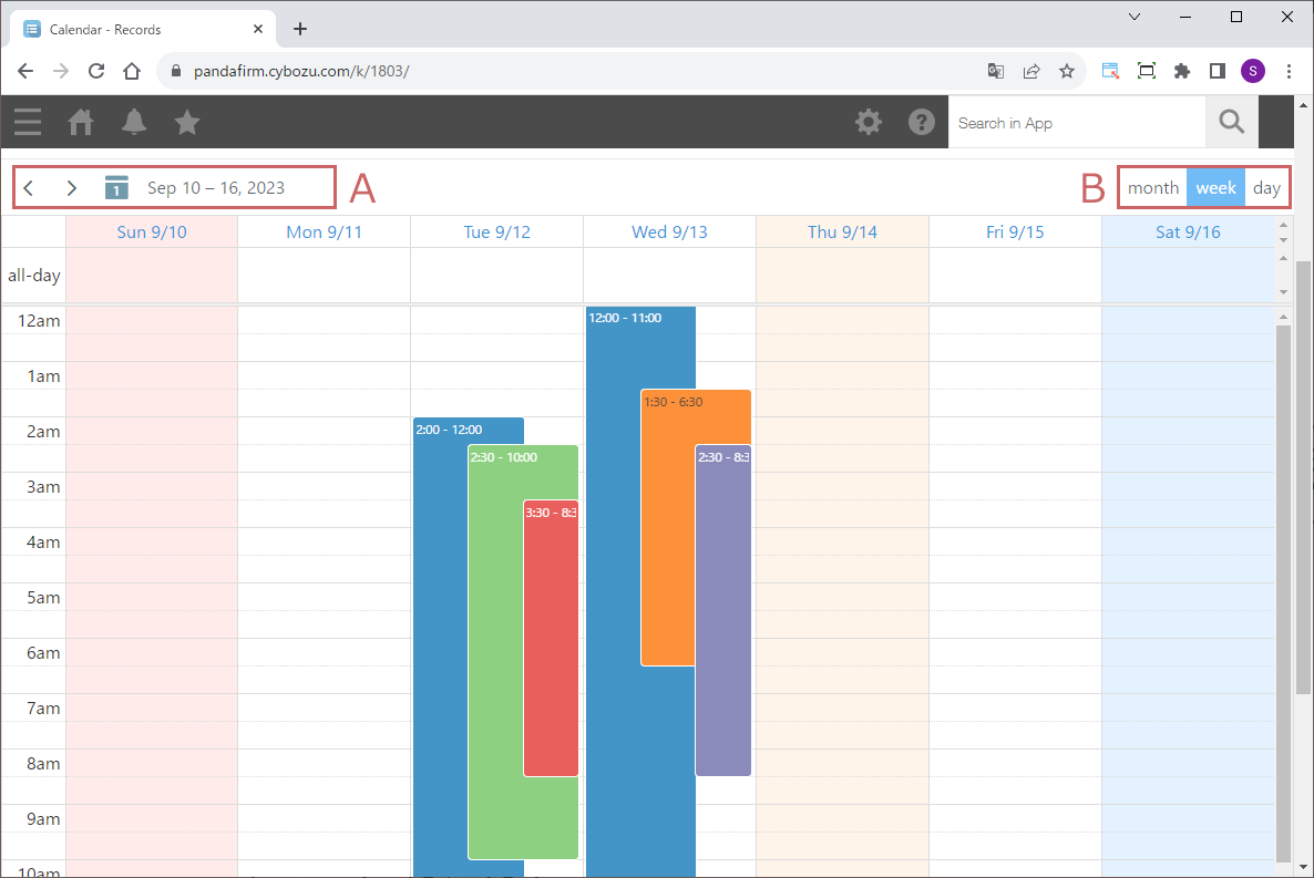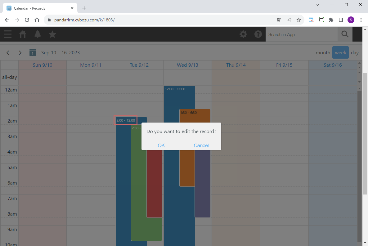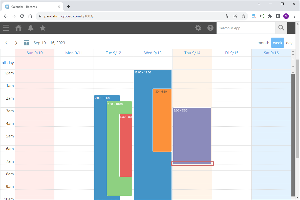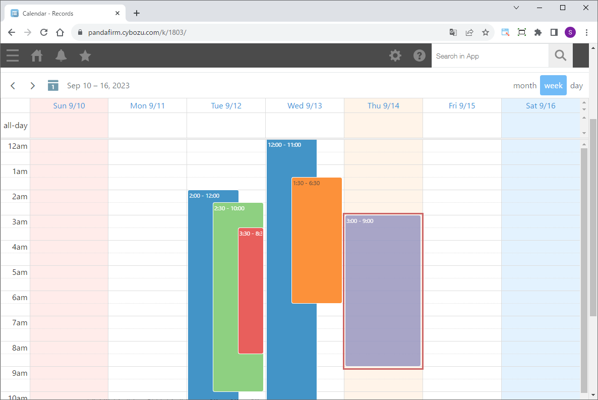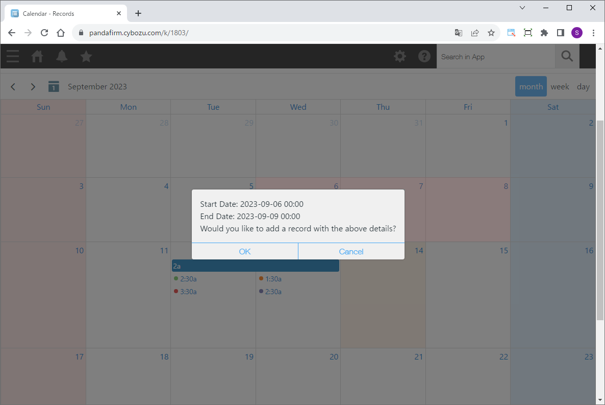 To use the calendar to register a record, click the desired date or drag the period from start to end.