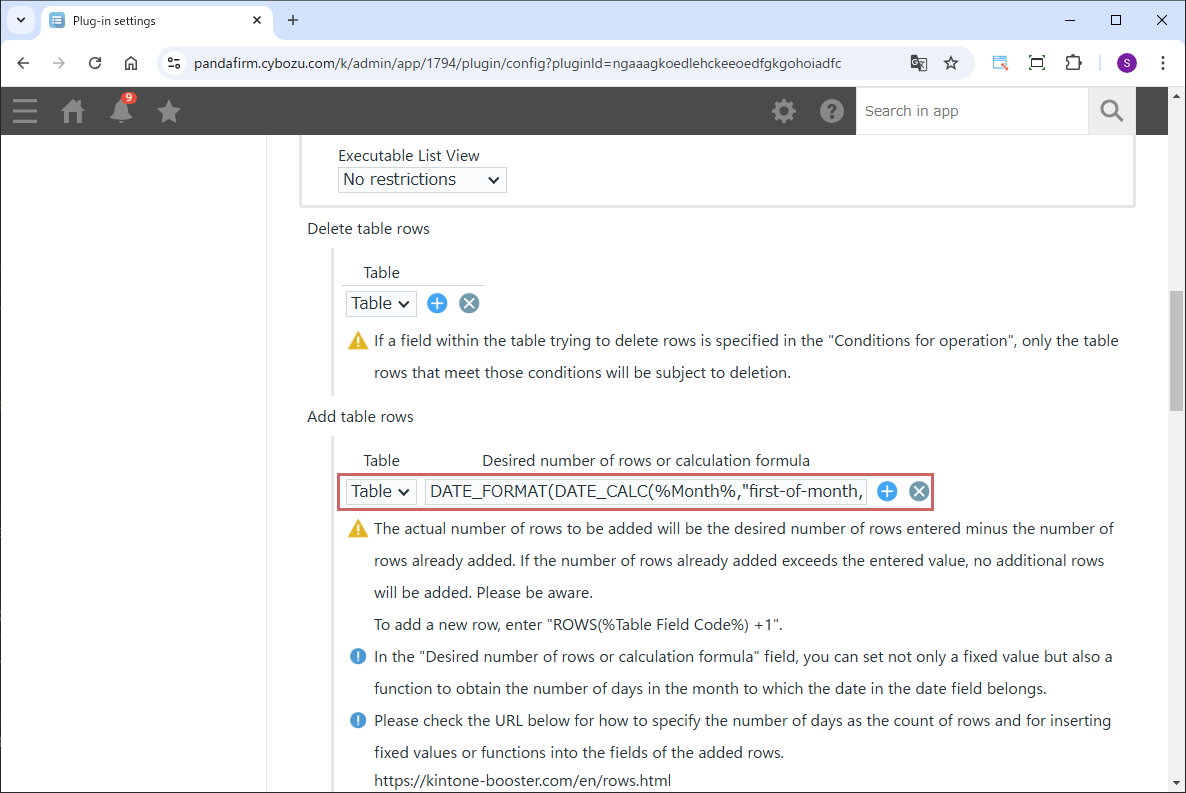Dynamic row number specification in Boost! Action's "Add table rows" feature