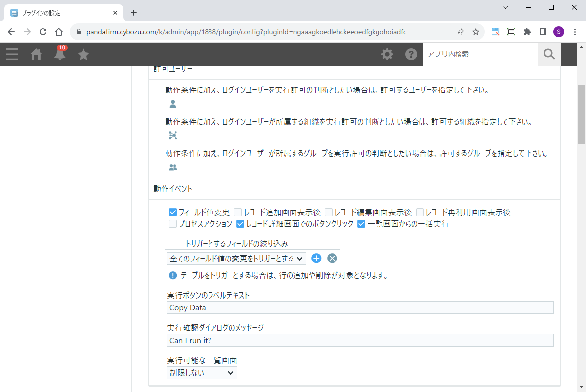 指定した条件に合わせて、フィールドの値を変更したり、他のアプリからのデータコピー等を行うプラグインです。