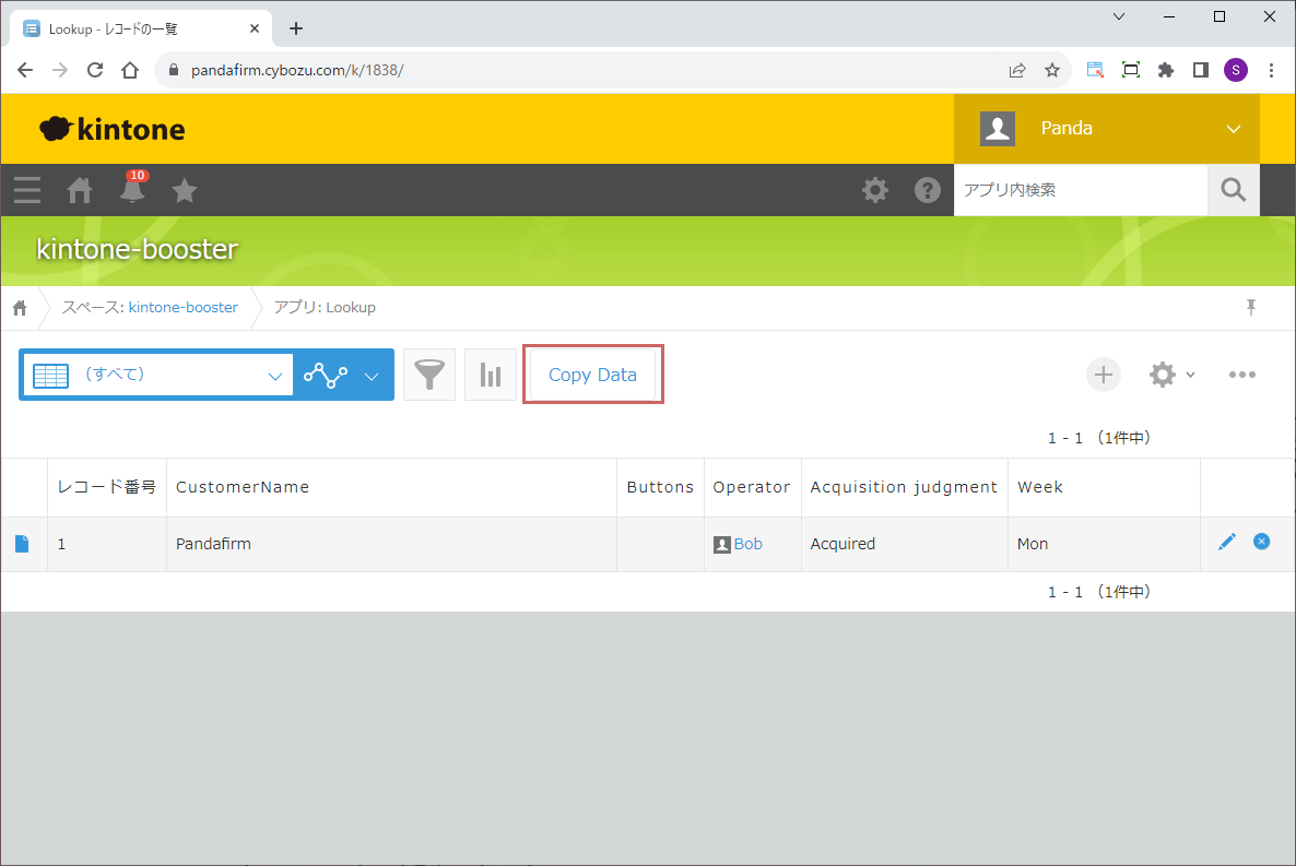 レコード一覧画面でのボタン表示位置はこちらになります。