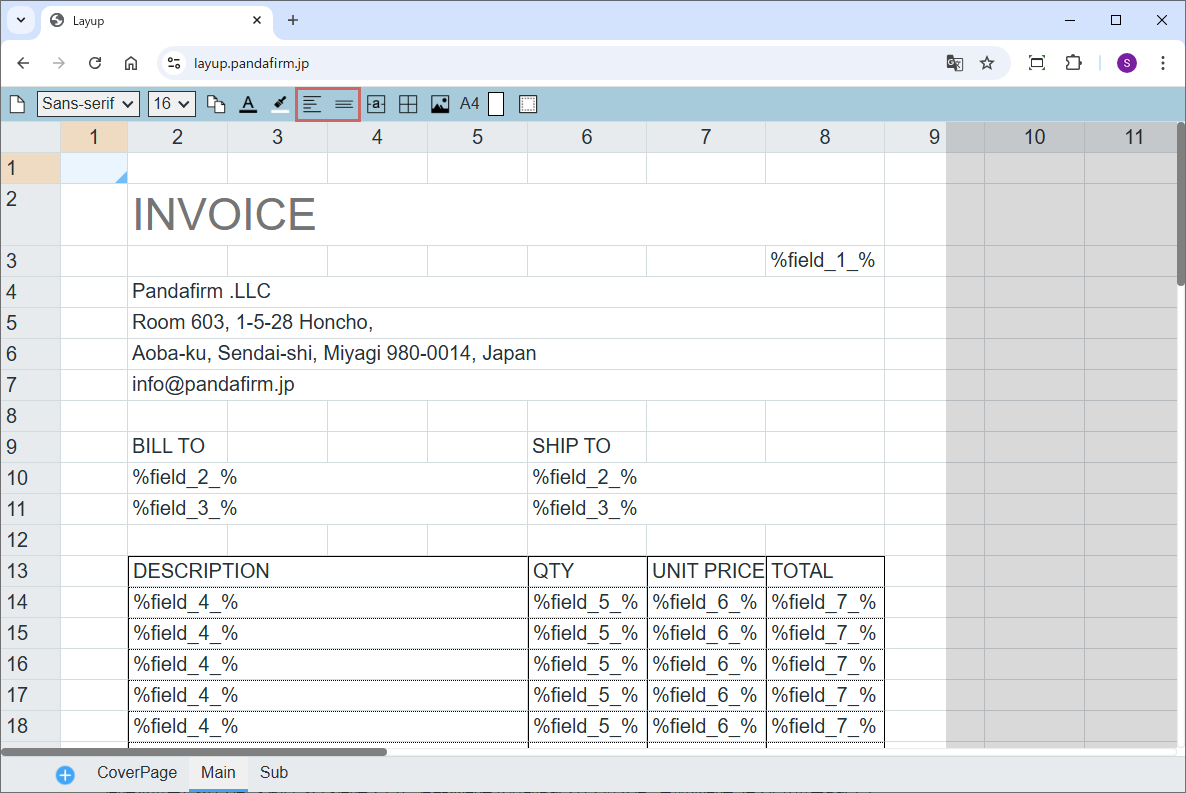 「Layup」は、ブラウザ上で帳票を自由にレイアウトできるツールです。エクセルに近い操作感で、印刷用の帳票やドキュメントを手軽にデザインできます。