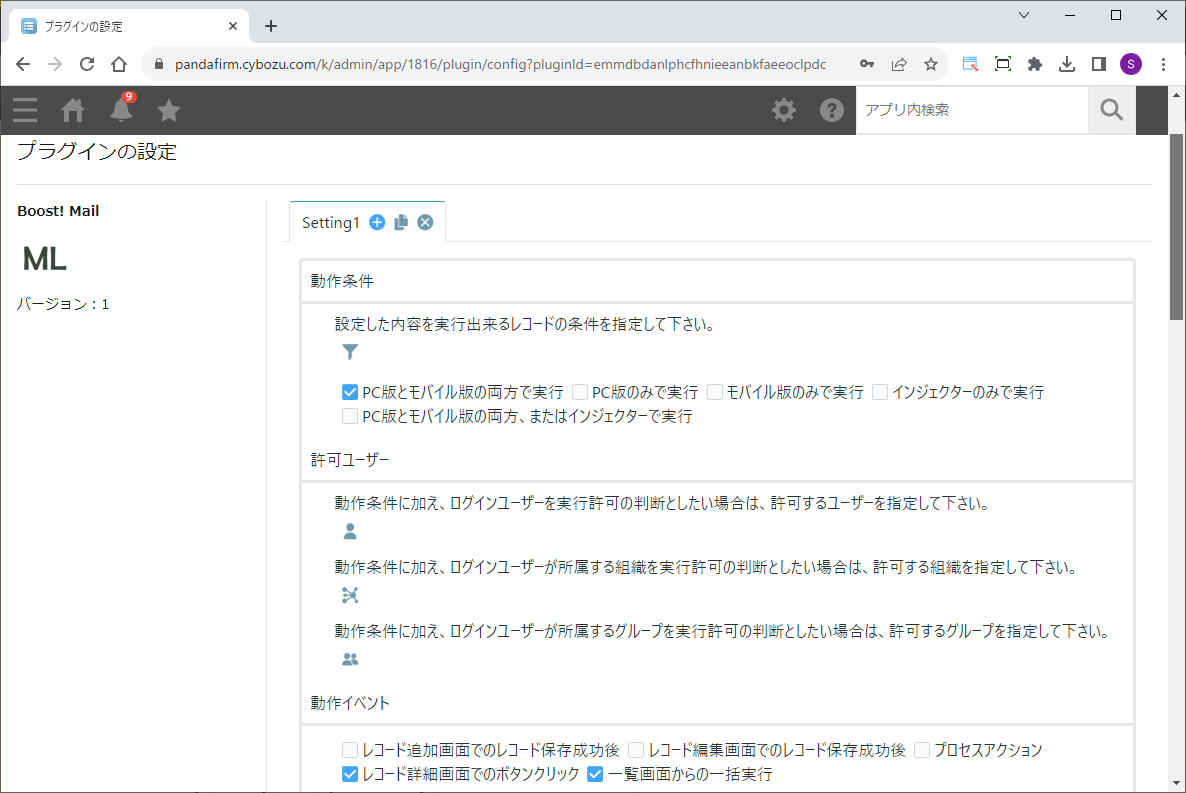 インストールをしたら、プラグインの設定画面を開き、動作設定を行います。