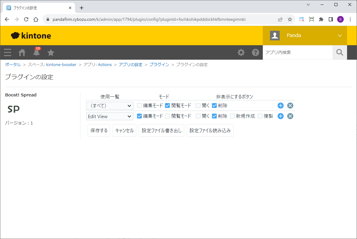プラグインの設定画面を開いて、本プラグインを有効にするビューやプラグイン実行時のモード、各ボタンの表示切り替えを指定します。