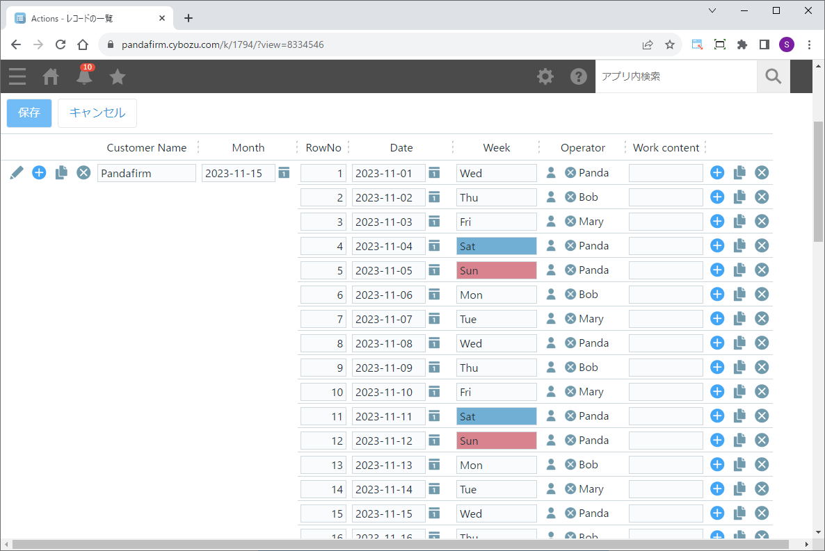 編集モードでは、レコードを追加したり編集を行うと青くハイライトされ、保存はそれらのレコードを対象として行われます。