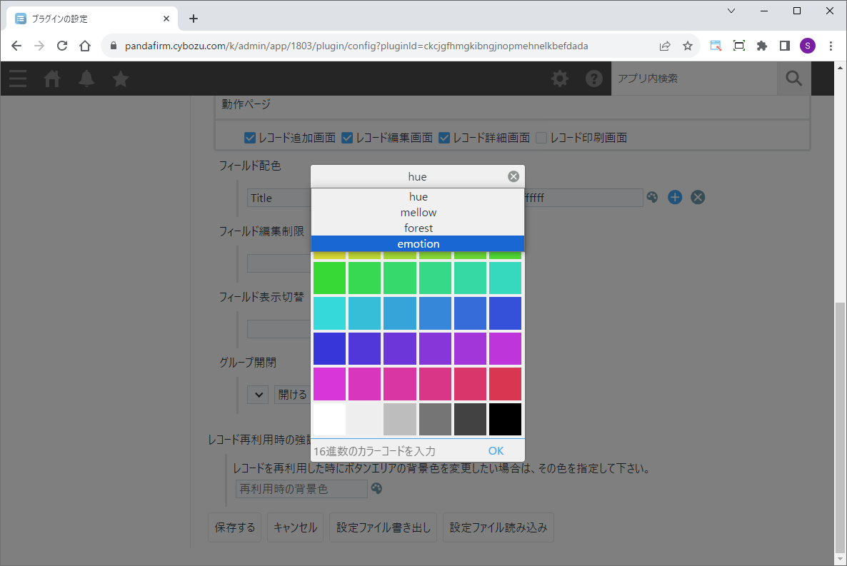 指定した条件に合わせて、フィールド要素の背景色を変更したり、フィールドの表示切り替え等を行うプラグインです。