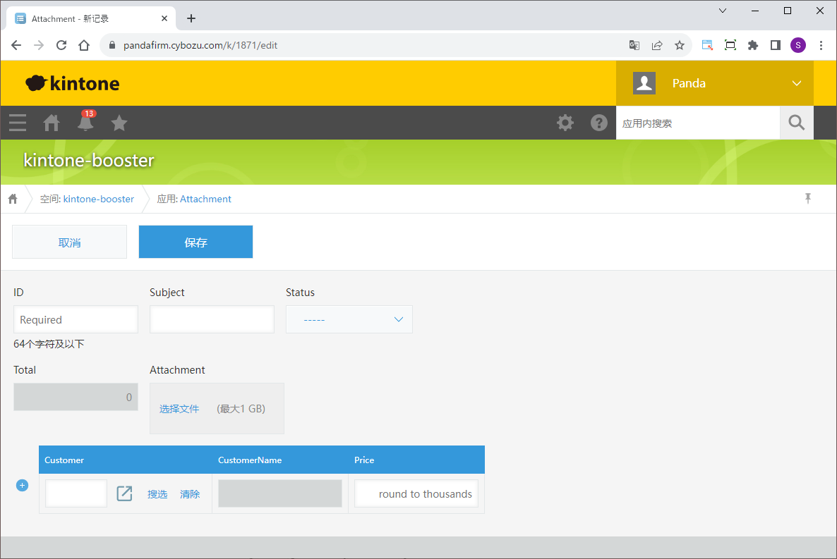 如果使用“表格排序”,并且表格中包含附件,系统将在保存记录后再次更新,以修正附件的位置。