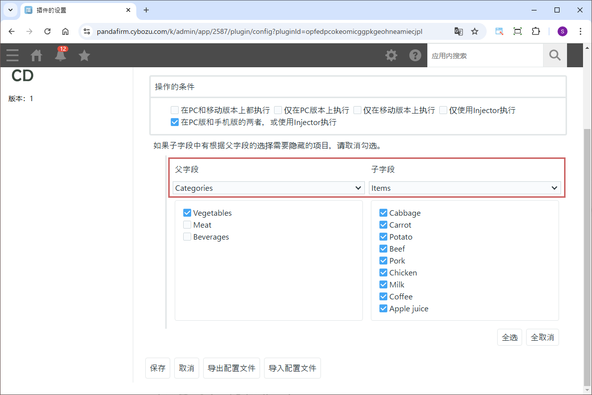 最后,针对父字段的每个项目,指定是否切换子字段的勾选状态以决定是否显示。