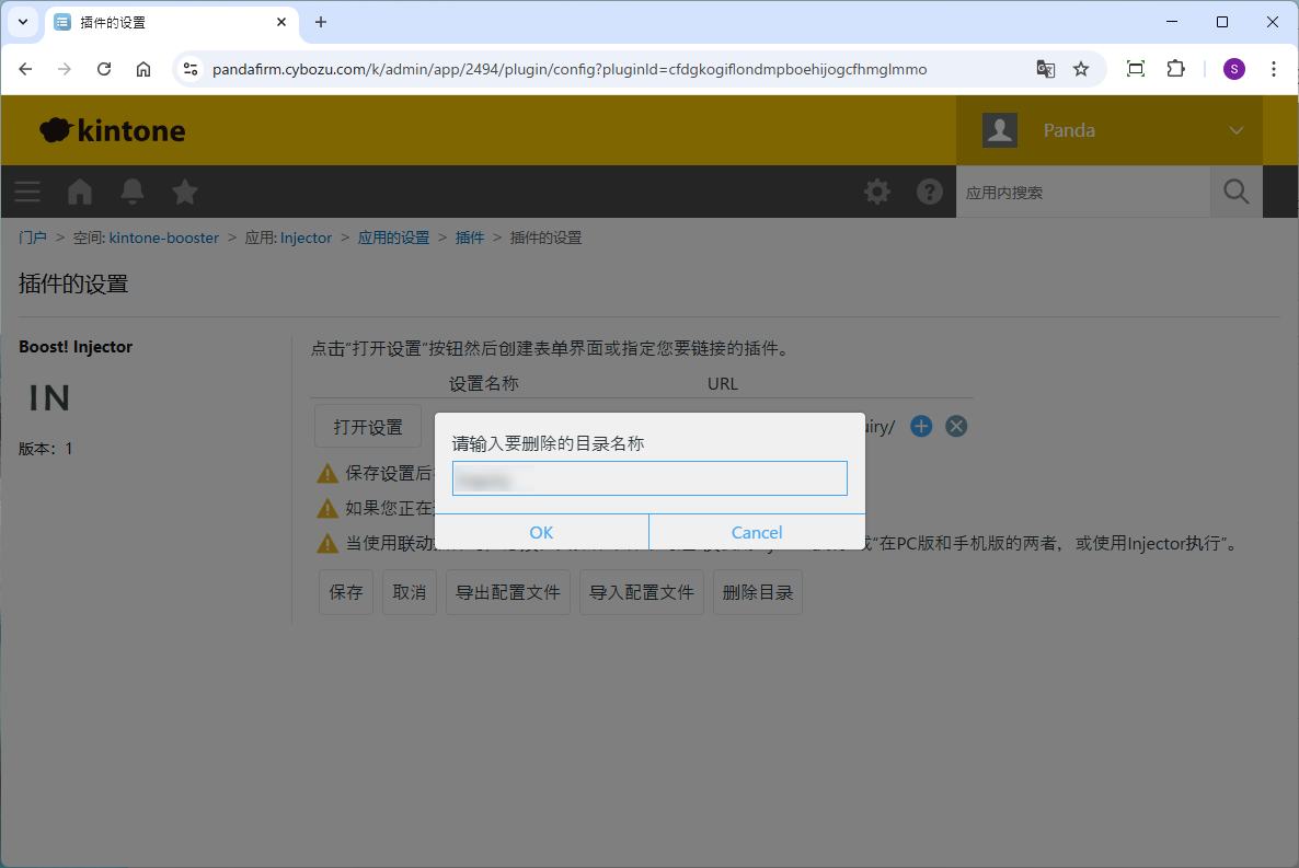 如果输入“injector”作为目录名称,则Web表单的URL将为“https://injector.kintone-booster.com/injector/”。 只能输入半角数字、小写英文字母 (a-z),以及连字符 (-) 和下划线 (_) 等符号。 |